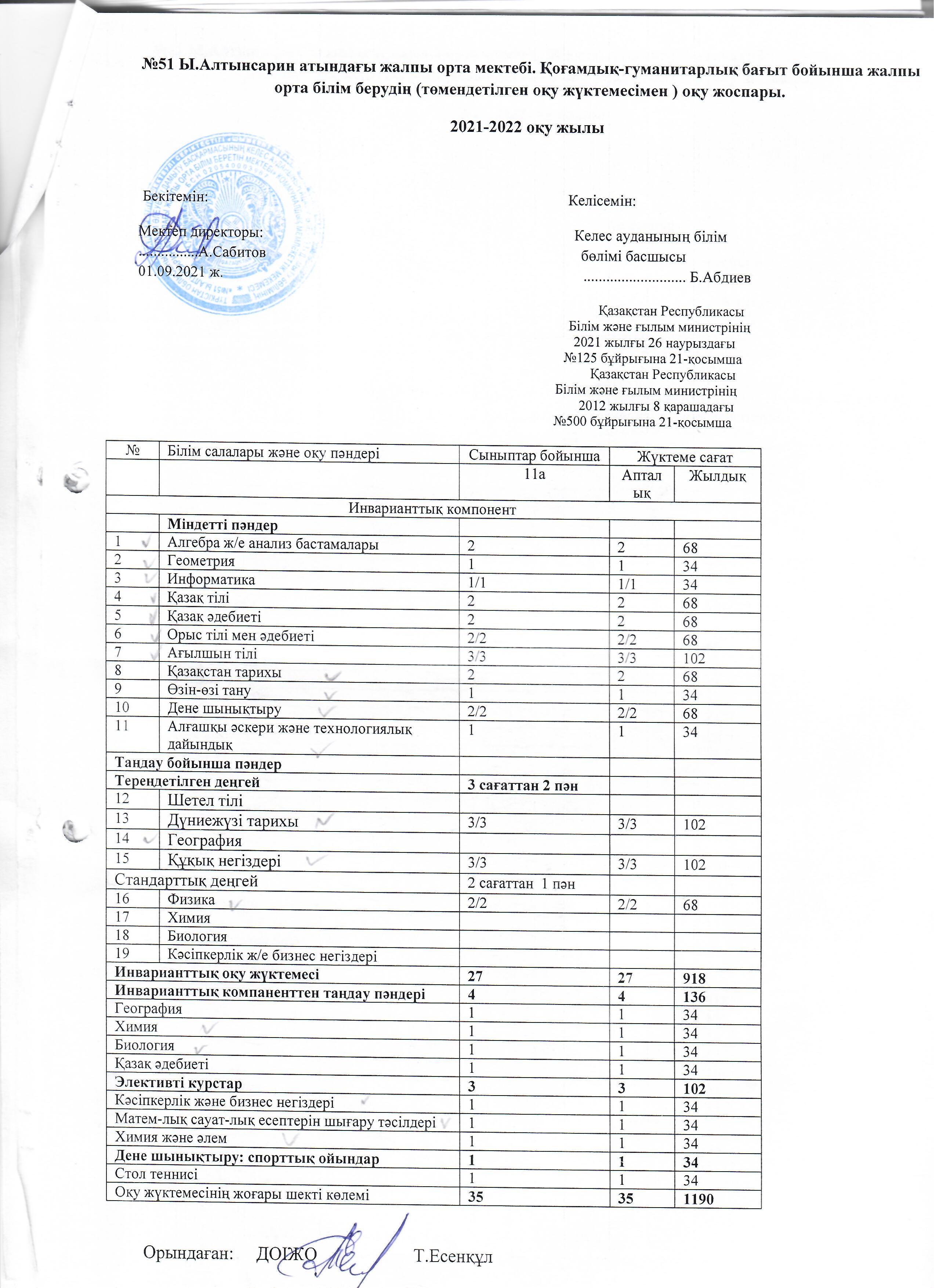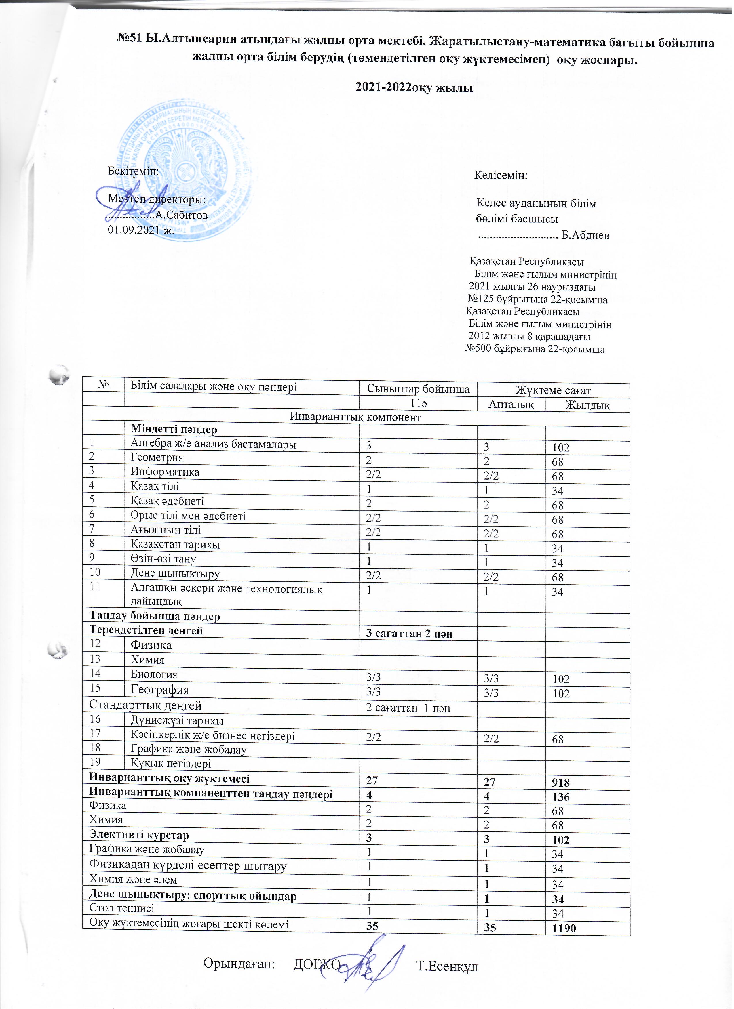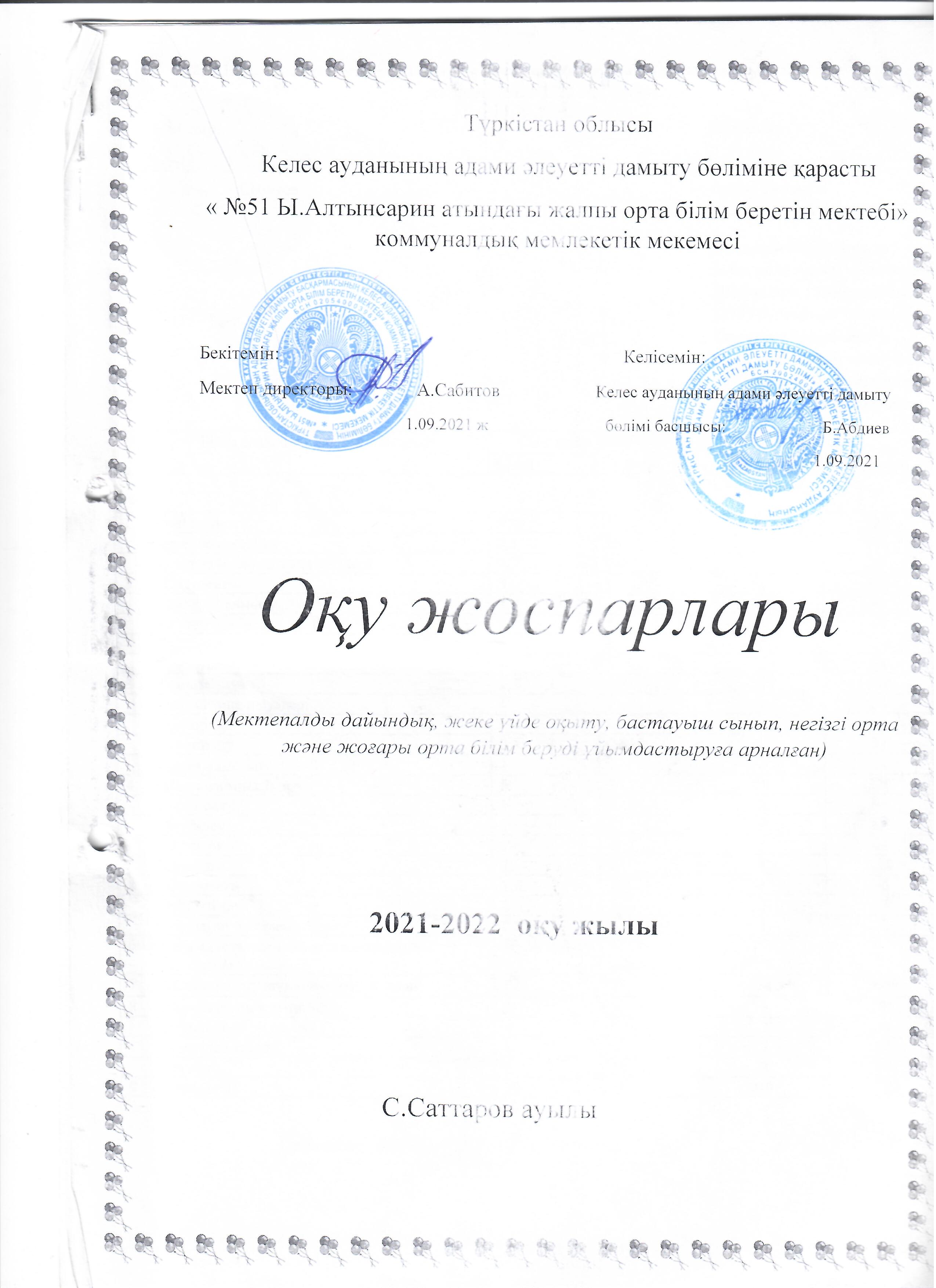 Оқу жоспары 2021-2022