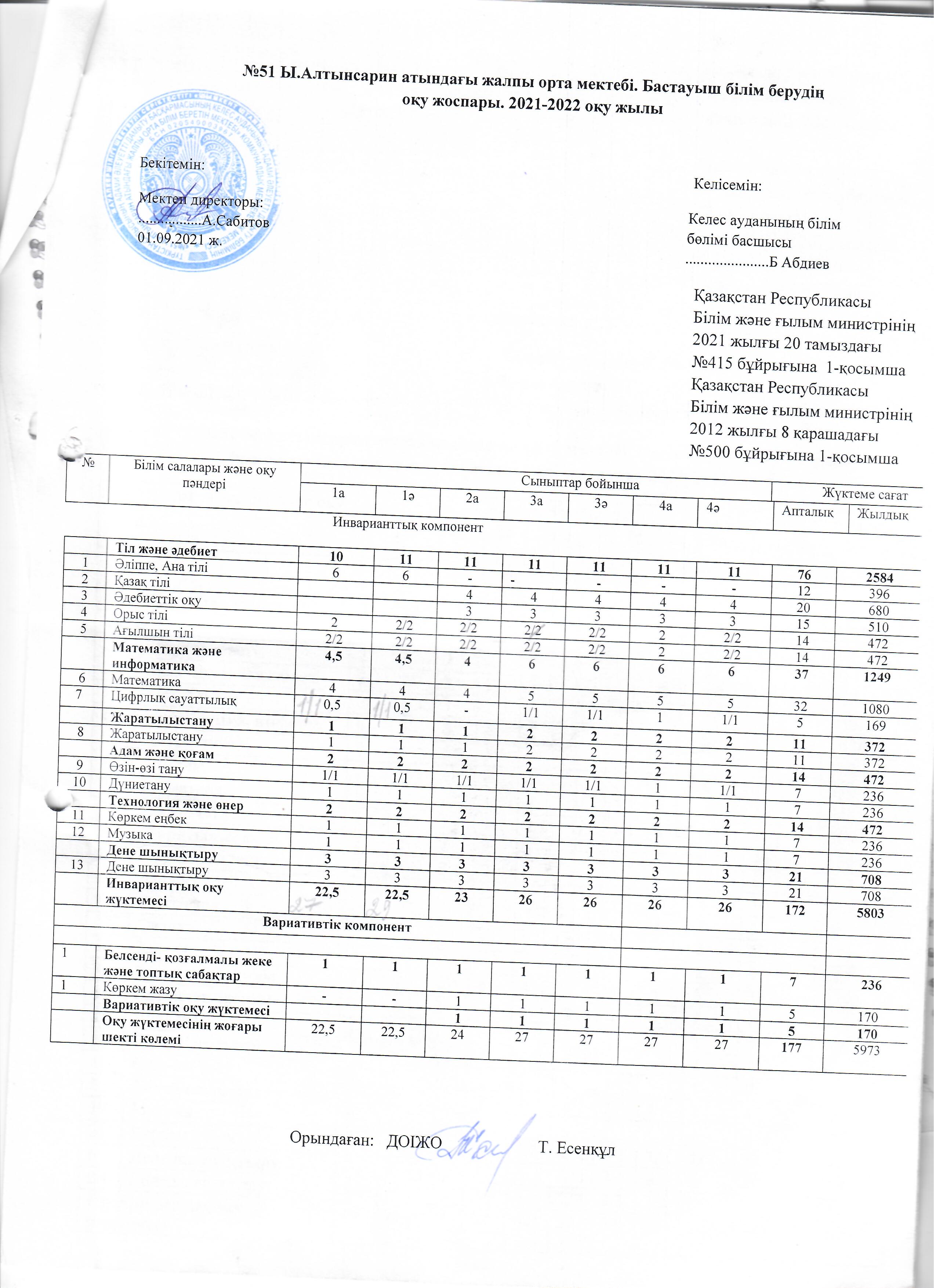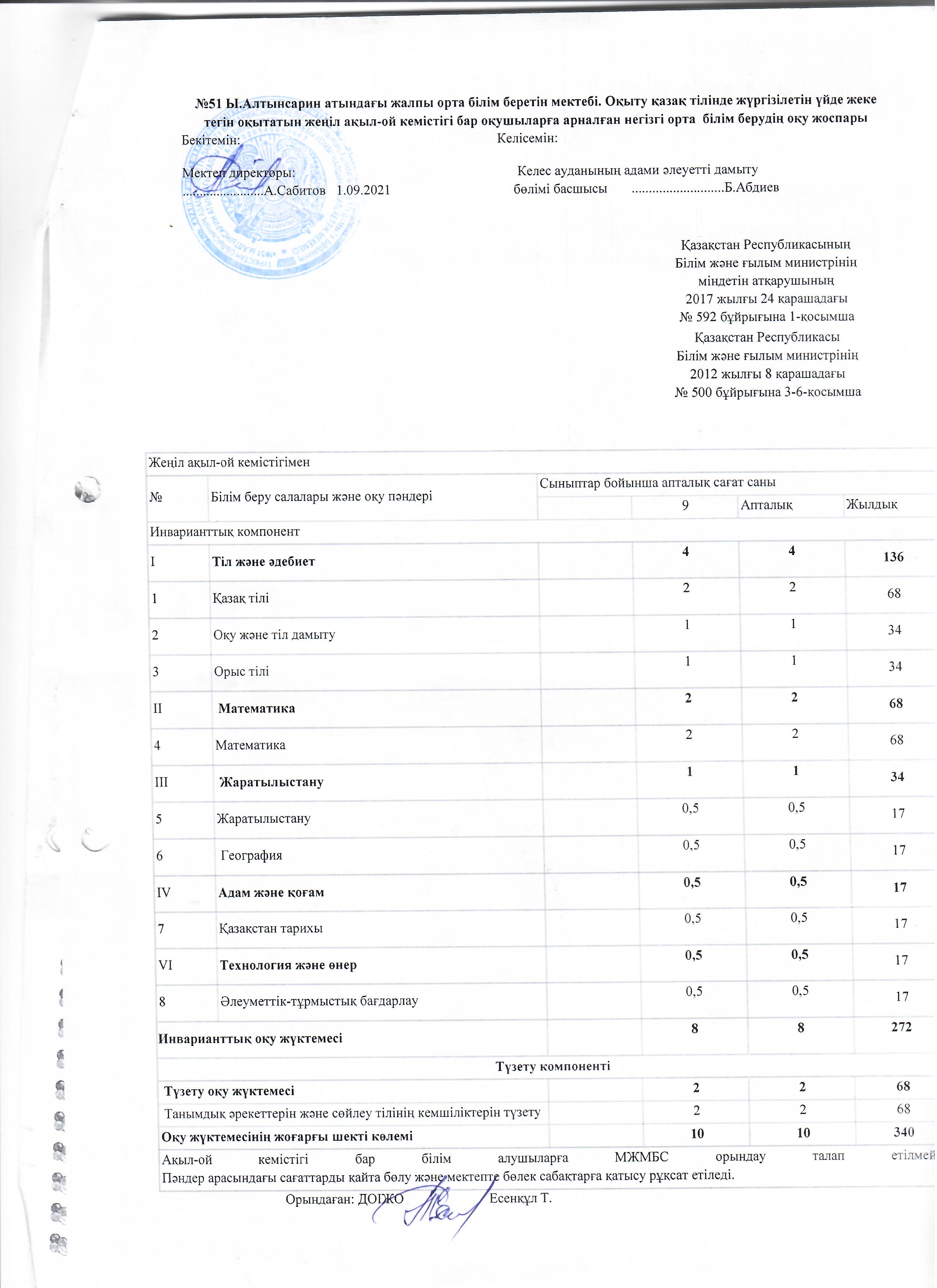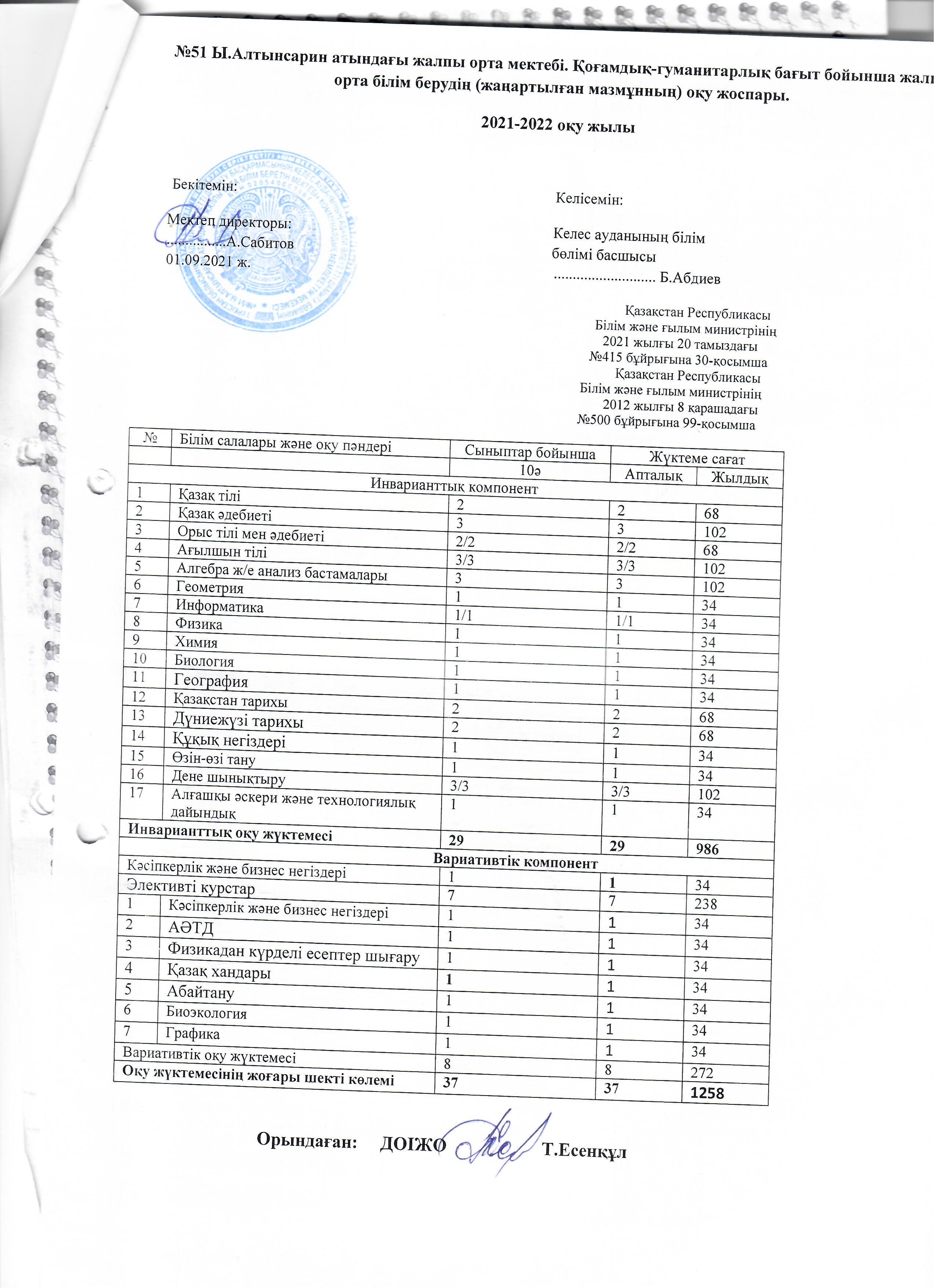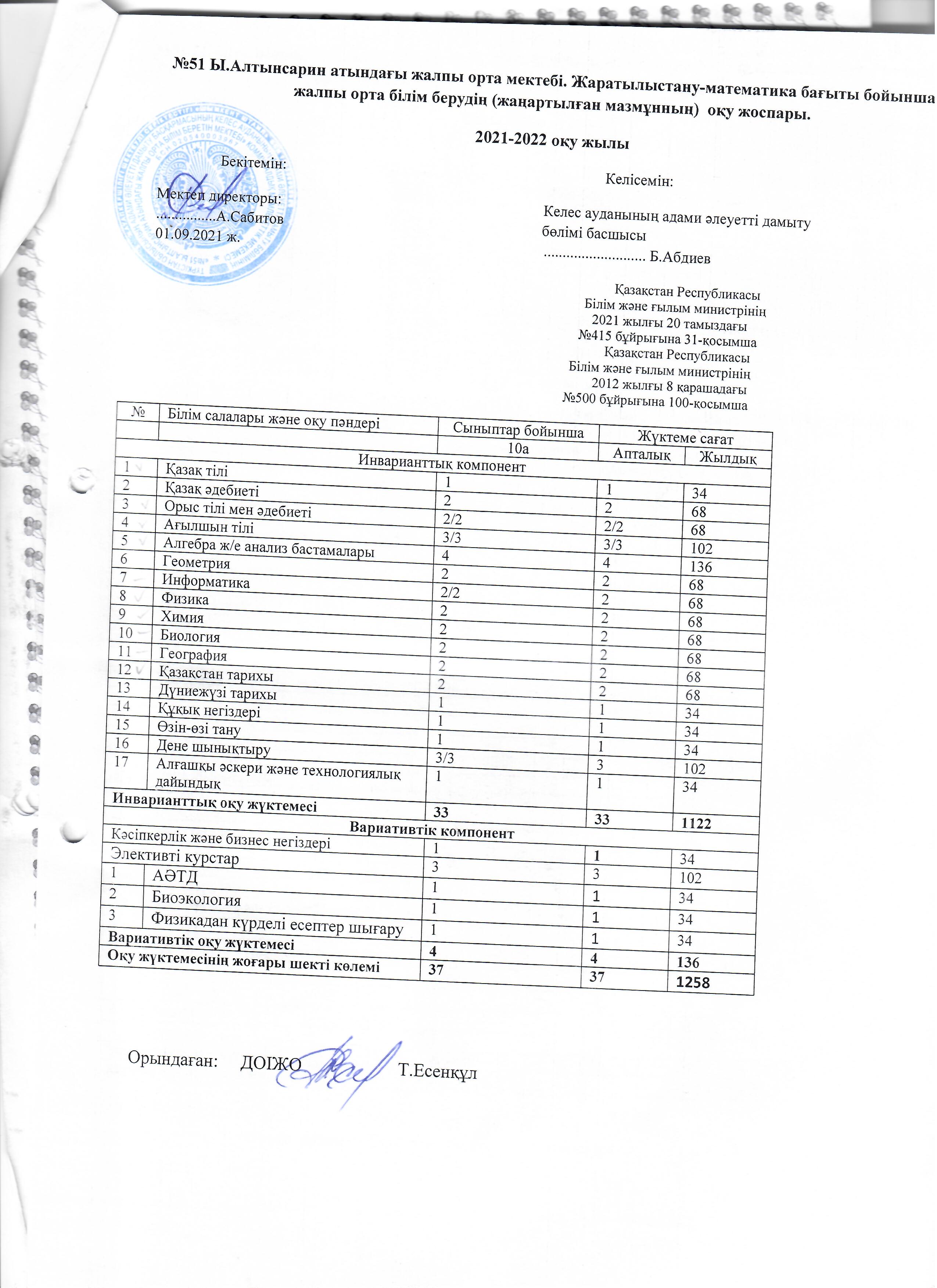 Оқу жоспары 2021-2022
