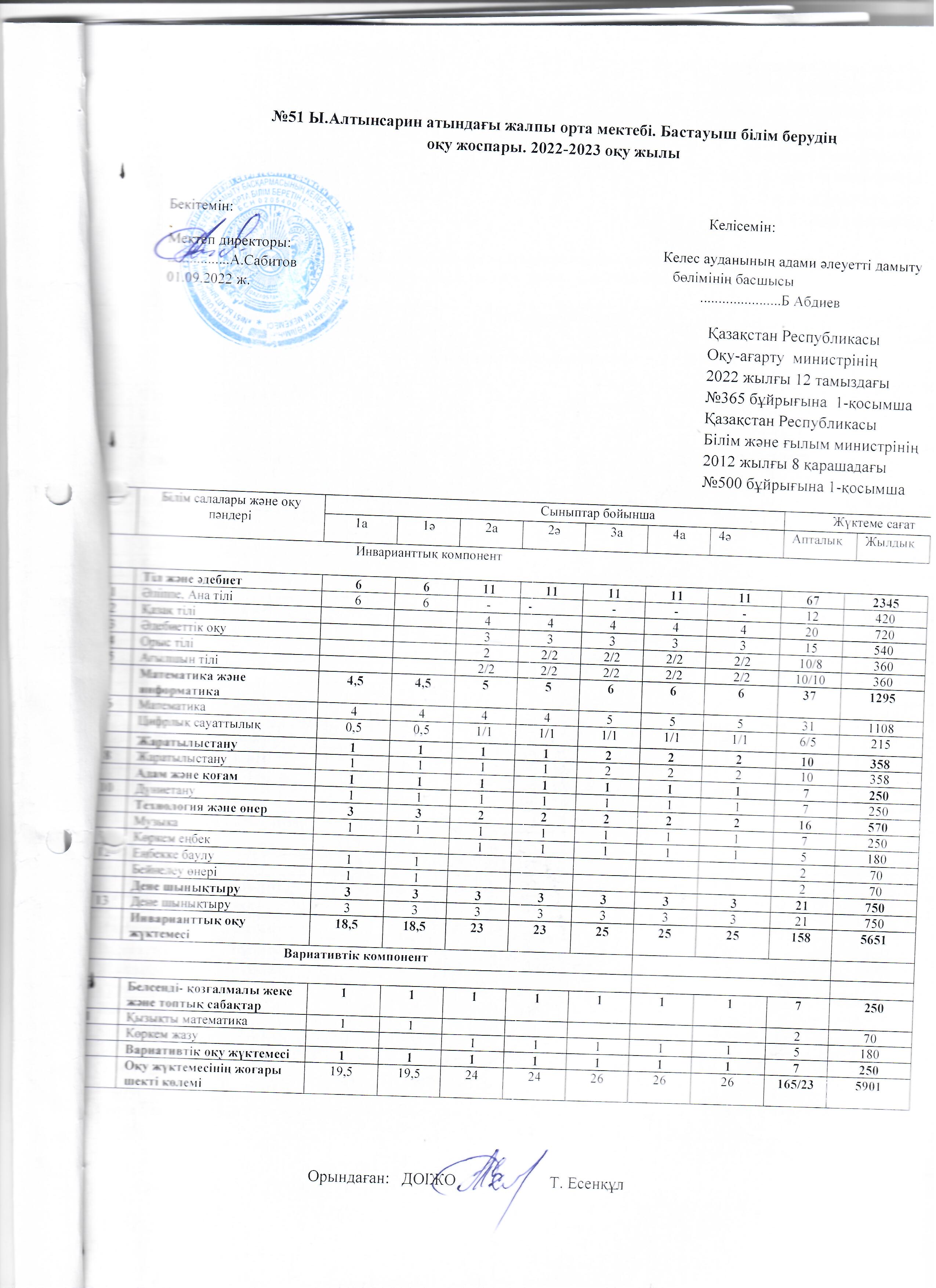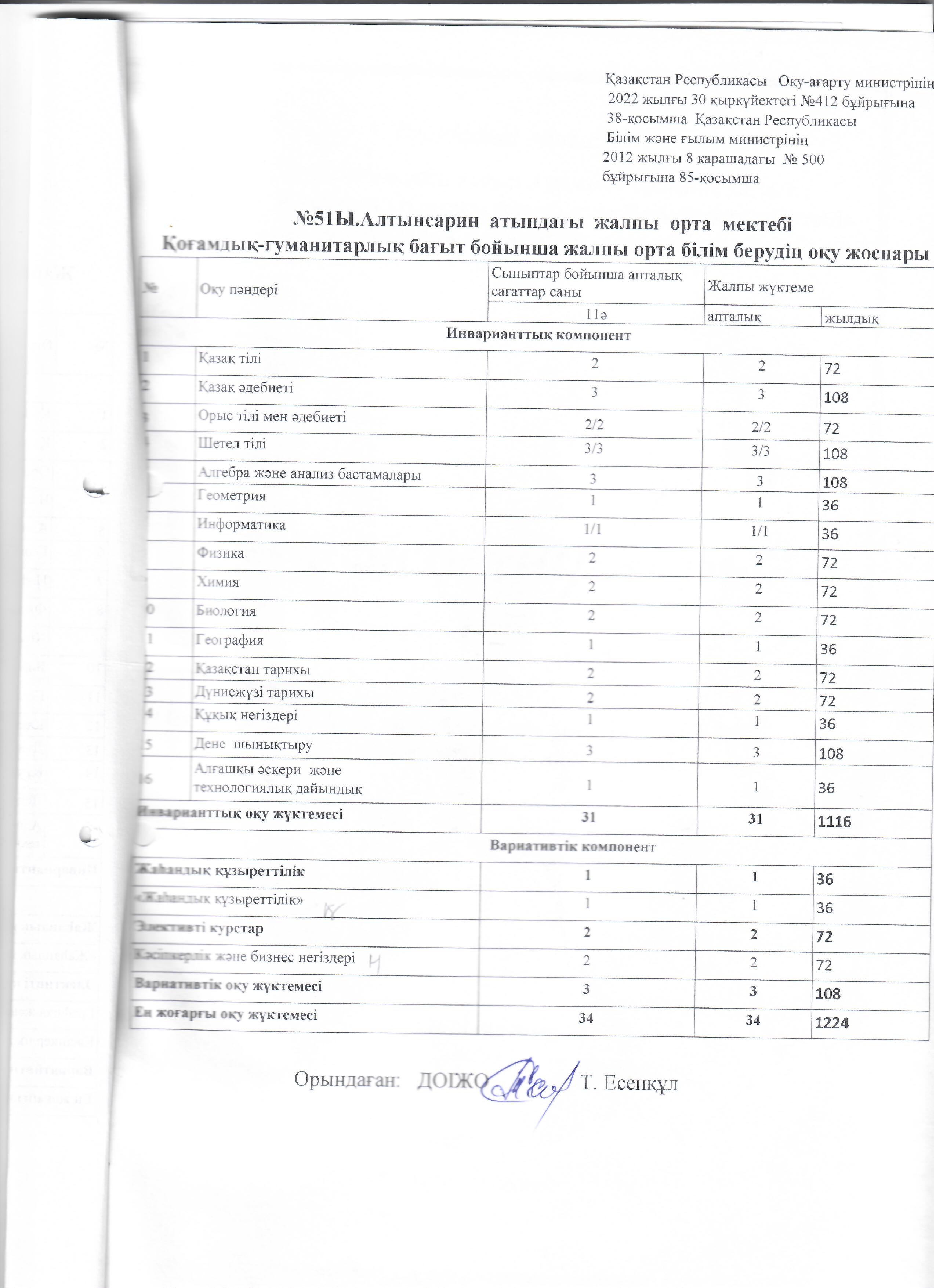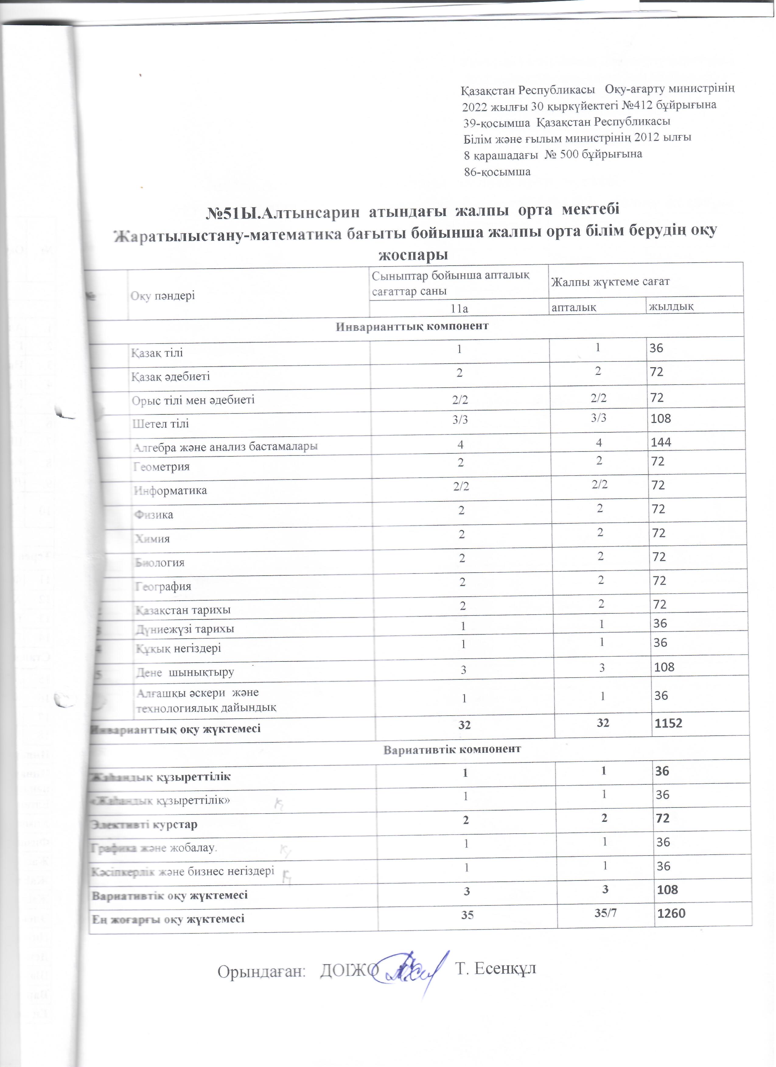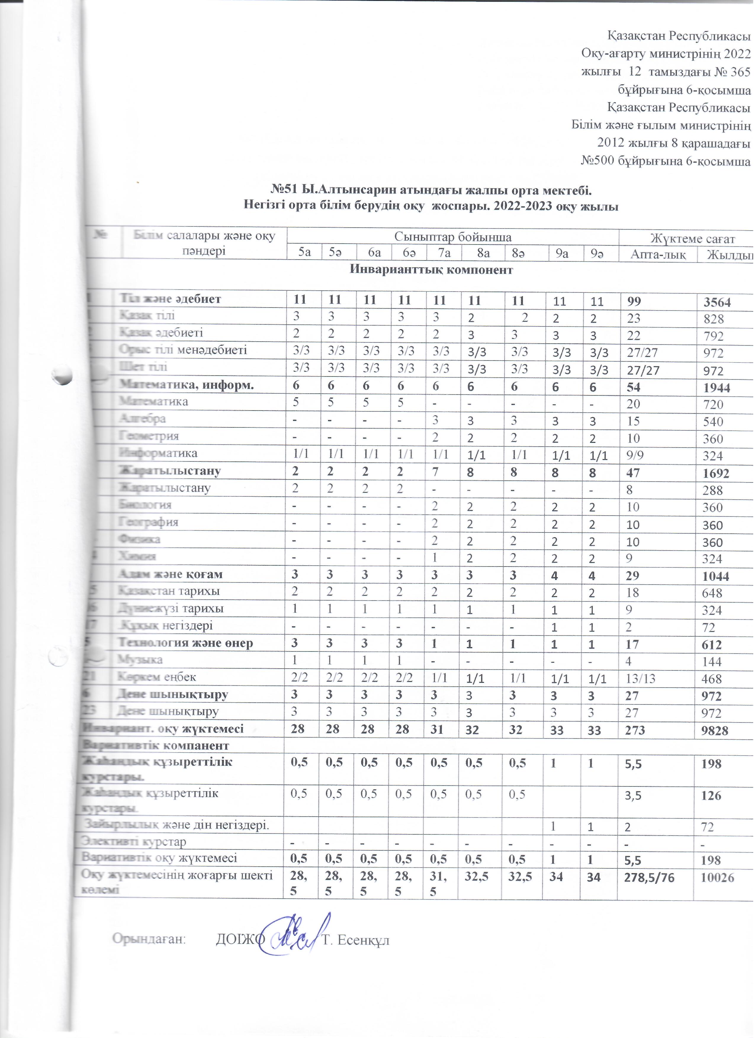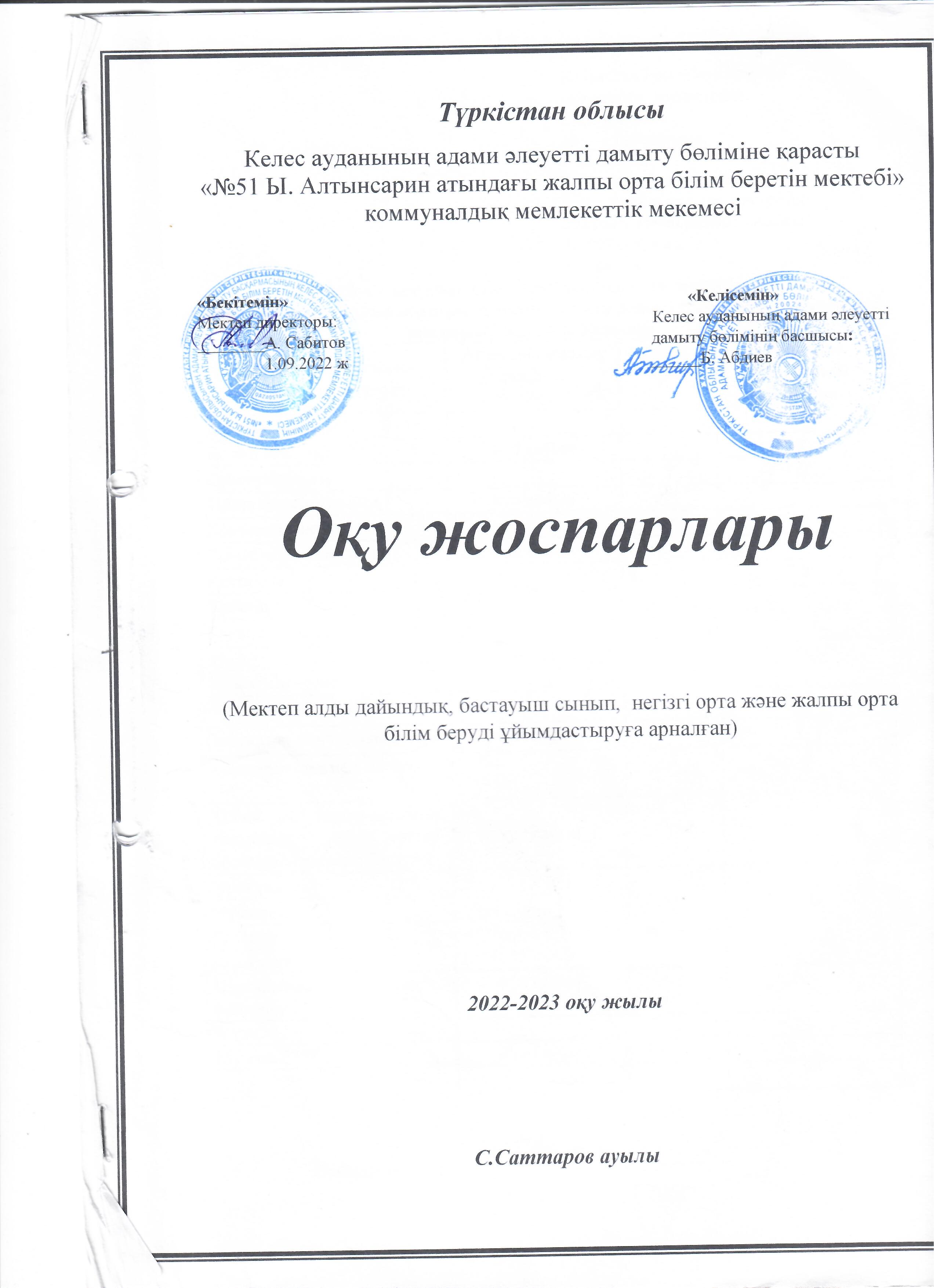 Оқу жоспары 2022-2023