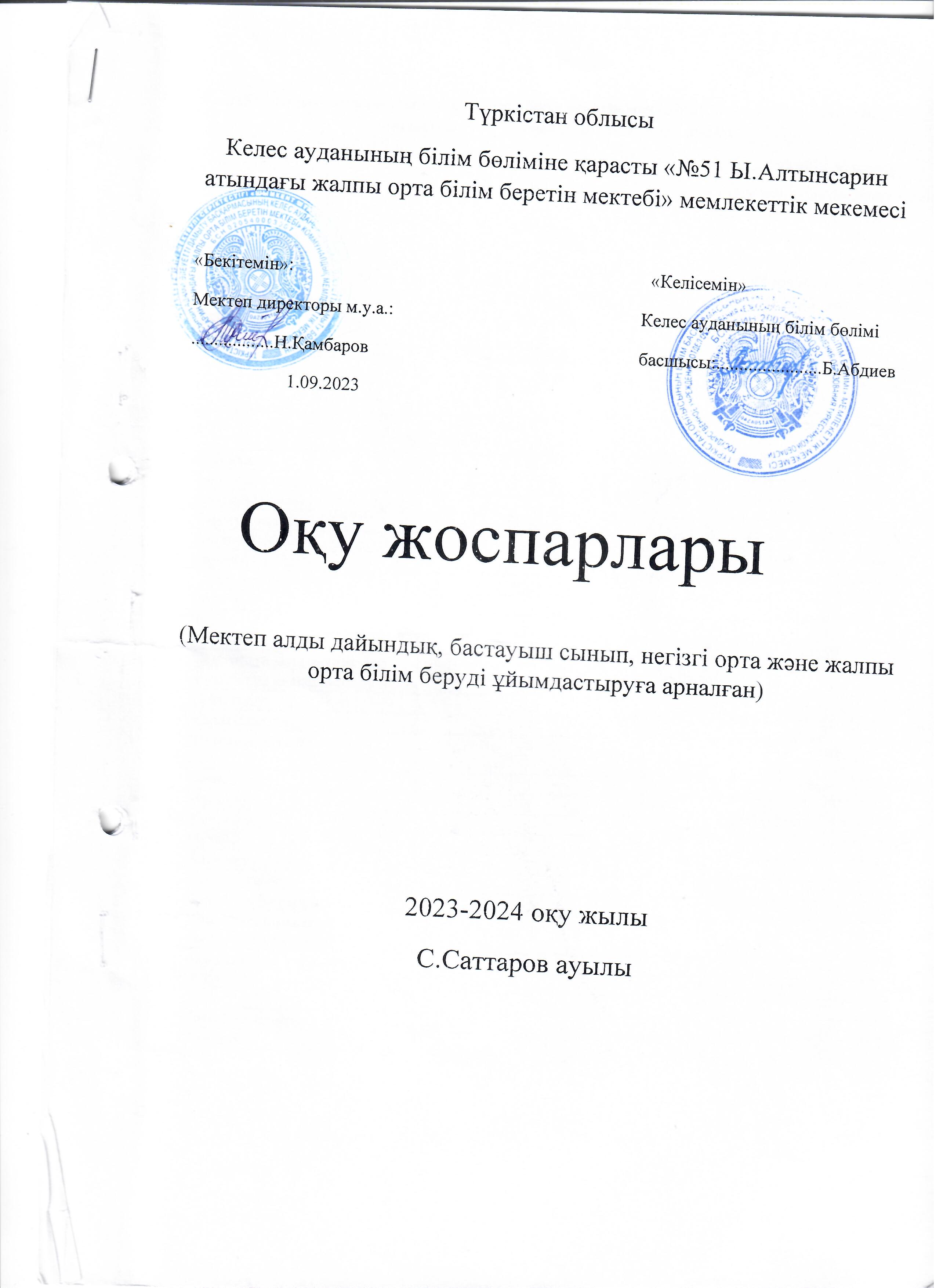 Оқу жоспары 2023-2024